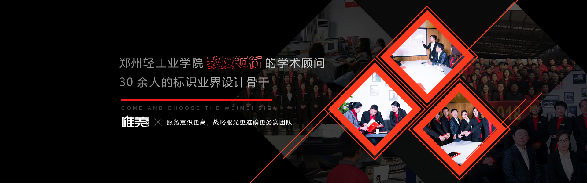 鄭州唯美標(biāo)識設(shè)計制作有限公司是一家專注從事地產(chǎn)住宅、商業(yè)廣場、商務(wù)辦公、醫(yī)院系統(tǒng)、學(xué)校文化、工業(yè)園區(qū)、市政交通、旅游景區(qū)、酒店餐飲、銀行金融、城市環(huán)境標(biāo)識標(biāo)牌系統(tǒng)規(guī)劃、設(shè)計、制作、...
